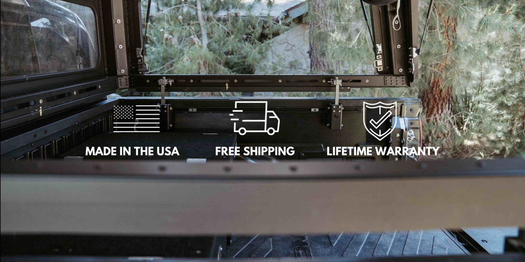 WE'VE ALSO KEPT SAFETY IN MIND THOUGHOUT THE ENTIRE DESIGN PROCESS. NOT ONLY FOR YOU, BUT FOR YOUR EXPENSIVE TOPPER AS WELL. TO ENSURE THIS, WE HAVE LIFTED AND LOWERED OUR PERSONALLY OWNED TOPPER ( WITH AN EXTRA 200LBS ON TOP) 3X A DAY FOR 6 MONTHS STRAIGHT.